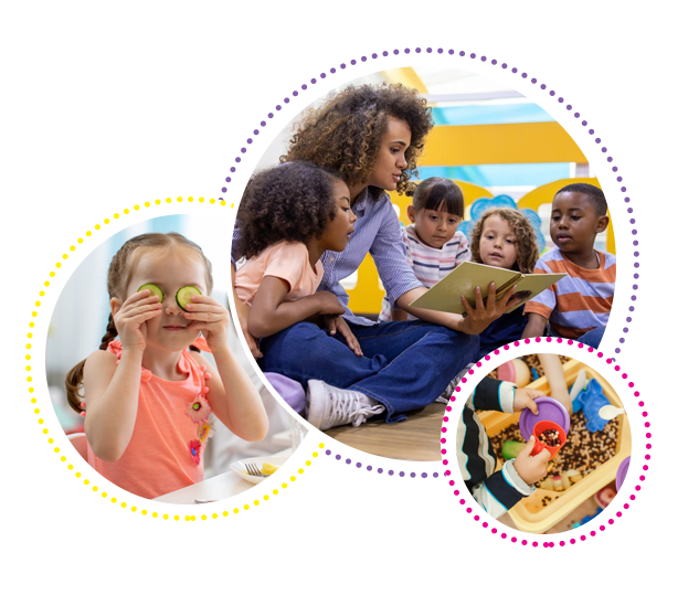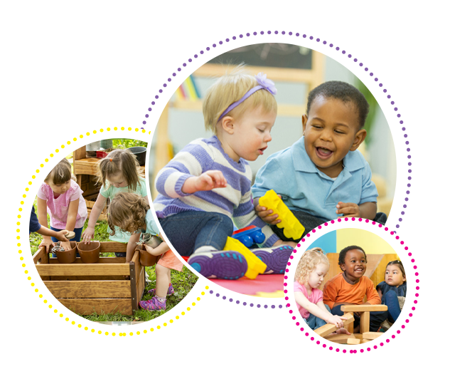 Small-group and individual activities focus on early literacy, numeracy, science exploration, and problem-solving skills, tailored to each age group.